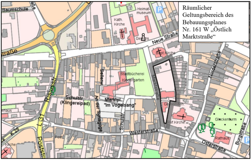 Der Verwaltungsausschuss der Stadt Weener (Ems) hat am 09.12.2025 beschlossen, den Bebauungsplanes Nr. 161 W „Östlich Marktstraße“ gemäß § 13a BauGB mit örtlichen Bauvorschriften aufzustellen. Der Aufstellungsbeschluss wird hiermit gemäß § 2 Abs. 1 Baugesetzbuch (BauGB) bekannt gemacht.
