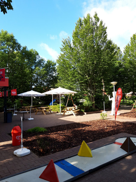 Minigolf auf 18 Bahnen. Auf dem 3000m² Gelände gibt es neben Minigolf auch die Möglichkeit Tischtennis und Federball zu spielen. Die kleinen Gäste können sich auf dem Spielplatz mit Wippe und Kletter/ Schaukelgerüst austoben.